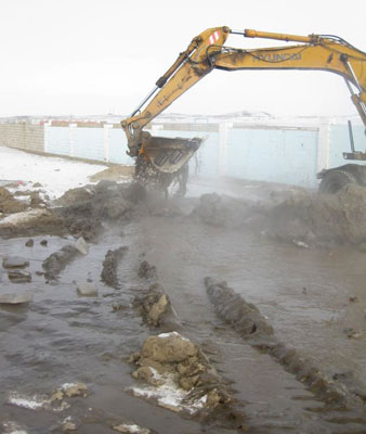 施設の塀の地下に温水線のパイプが埋まっているのですが、それが壊れてしまい、私たちが11月の日本公演から戻った後に、その壊れた所から水が地上に漏れ出て来るようになっていました。